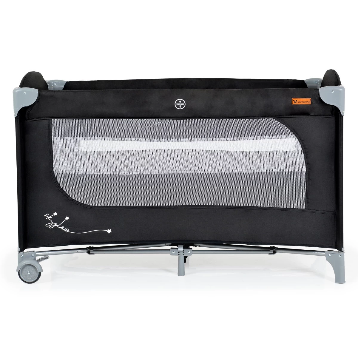 De zijkanten van mesh-materiaal zorgen voor een goede luchtcirculatie in het bedje en hebben als bijkomend voordeel dat je jouw kleintje altijd goed kunt zien. Dit luxere campingbed heeft een bodemverhoger dat ideaal te gebruiken is voor de allerkleinsten. Zo hoef jij niet diep te bukken om je kindje in bed te leggen of eruit te halen. Daarnaast heeft de Skyglow 2 een handig kruipluik met ritssluiting, zodat je kindje er zelf in- of uit kan kruipen als hij/zij wat ouder is.Â